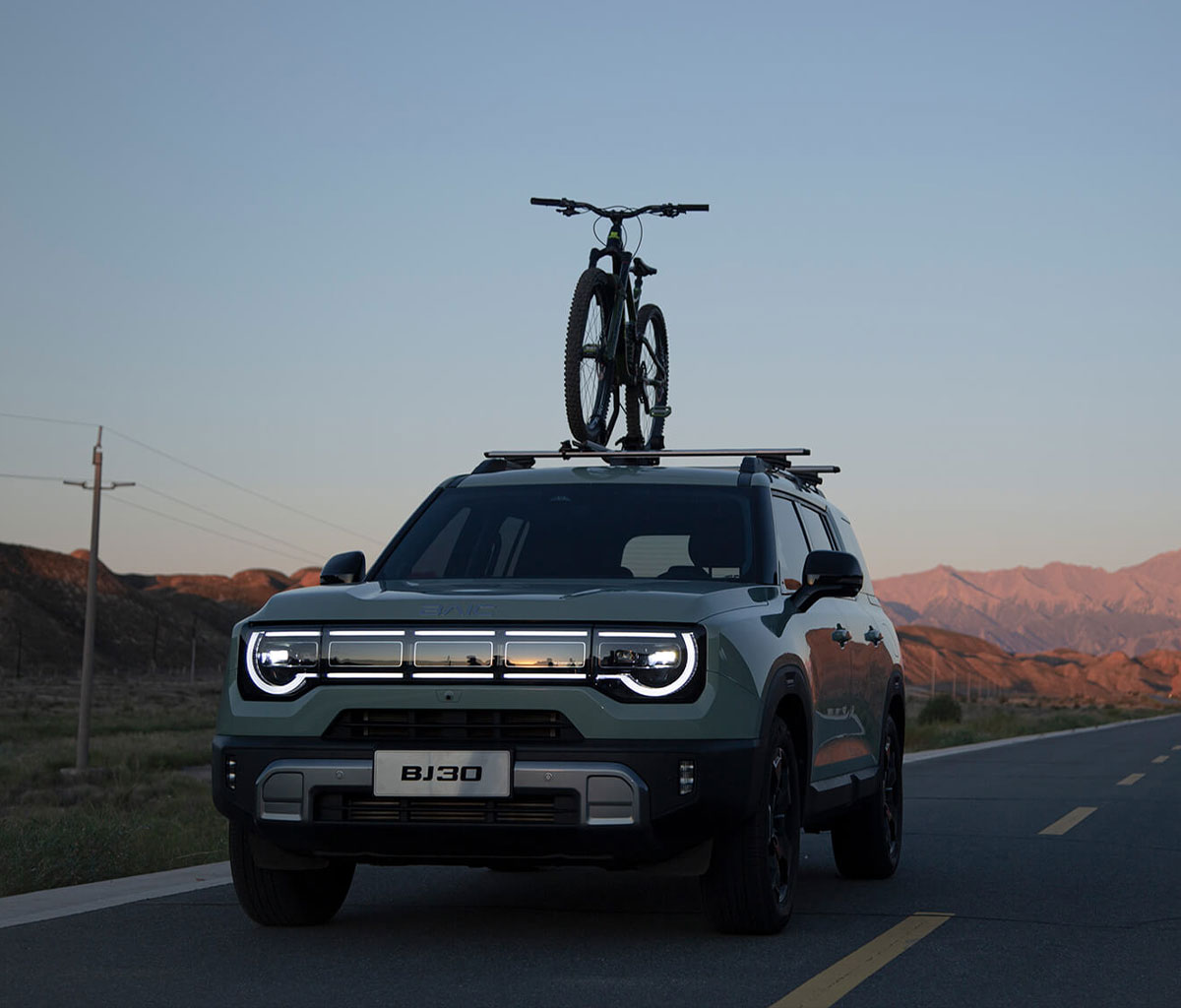The hardcore reinforcement strip highlights BJ30’s rugged style. The front bumper highlights an off-road style.